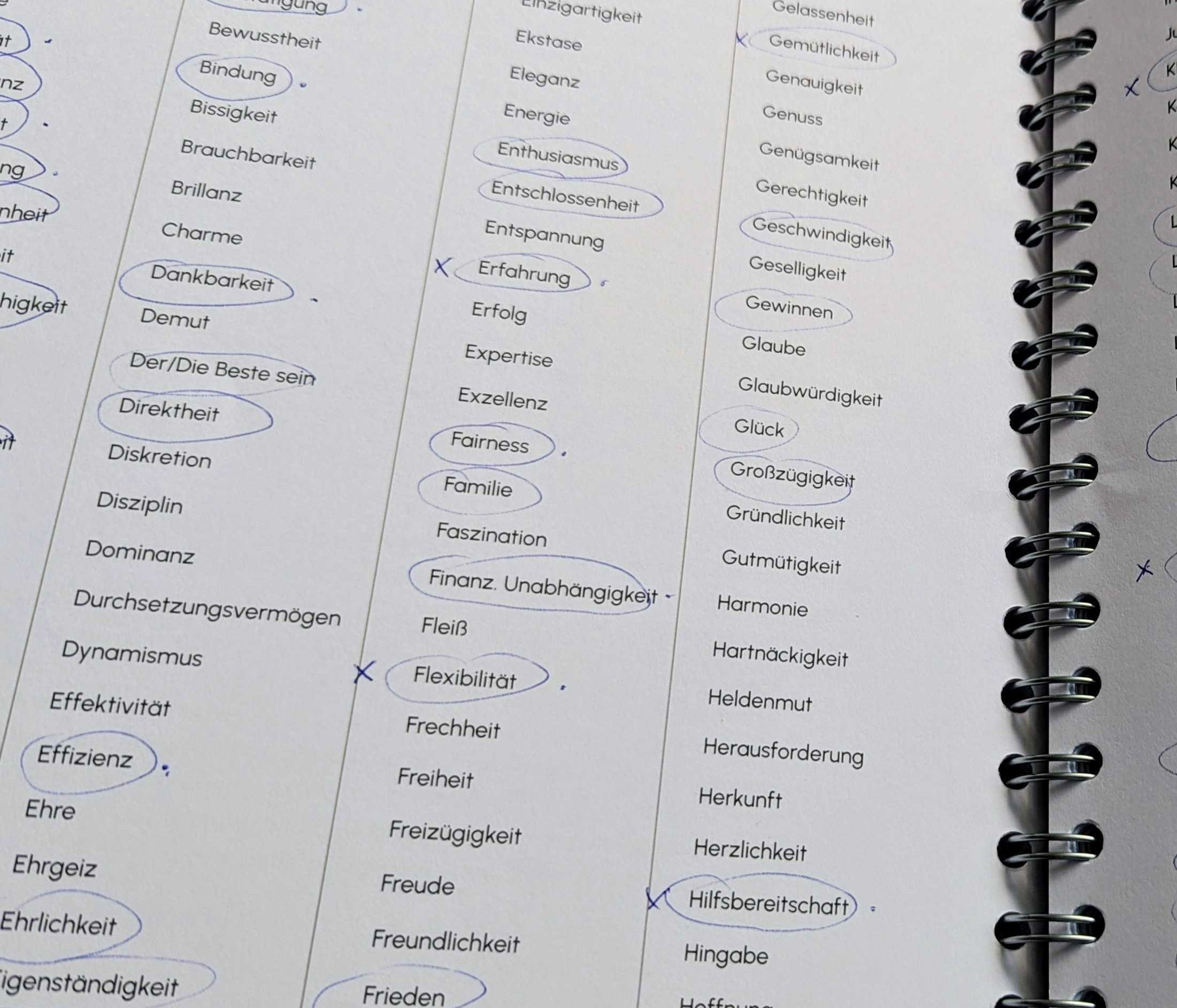 Ob Sie zur selben Community gehören wollen wie ich, können Sie übrigens ganz leicht herausfinden. Ich habe nämlich meine individuellen Werte erst neulich anhand einer Streichliste erarbeitet. Diese Listen gibt es zuhauf im Netz. Sie brauchen nur intuitiv die für Sie nicht so wichtigen Werte zu streichen. Solange, bis nur noch Ihre Top-5-Werte übrig bleiben.