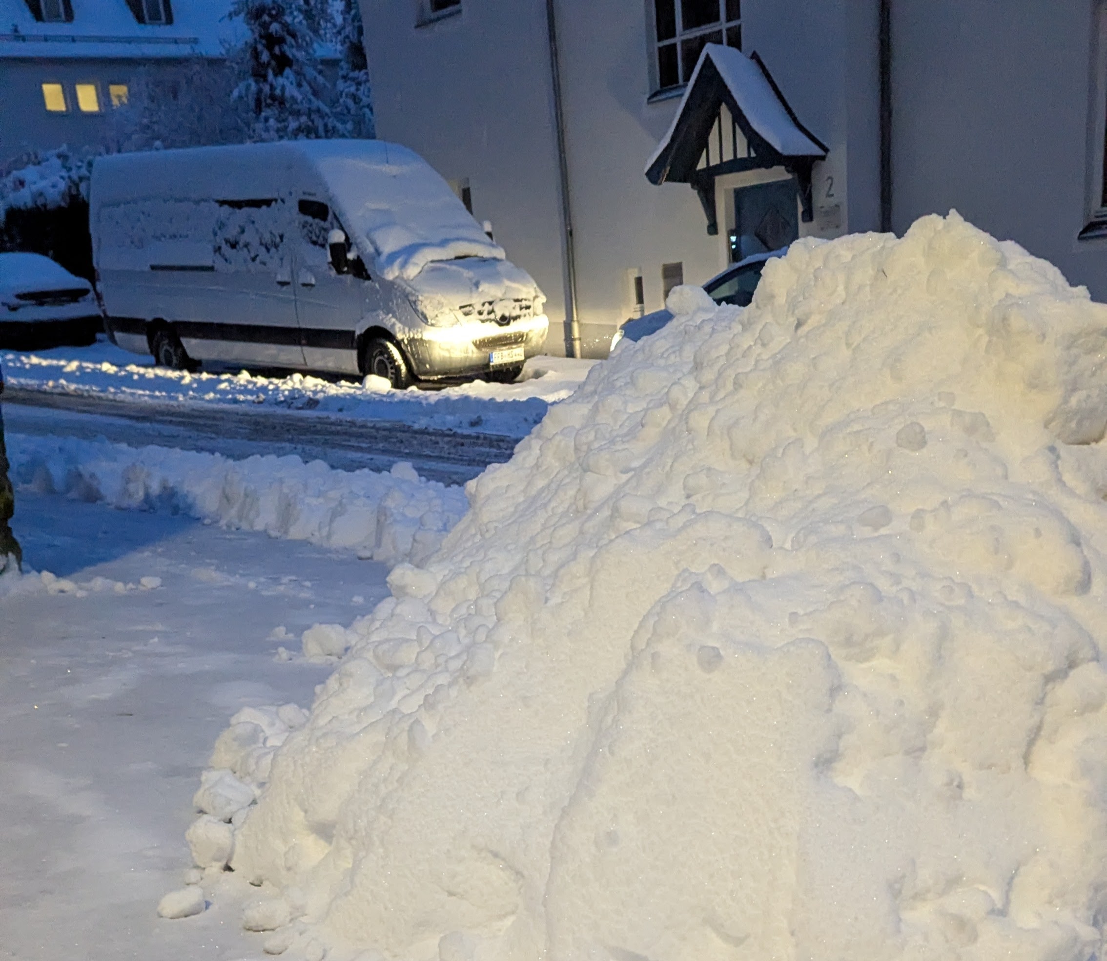 Beim Staksen durch den inzwischen angetauten und wieder gefrorenen Schnee traf ich dann gestern eine Bekannte, die aus Verzweiflung über die Eismassen vorm Haus die für den Räumdienst zuständige städtische Gesellschaft alarmiert hatte. Über irgendein Online-Formular.